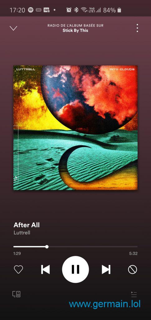 Et la cover s’agrandit si je touche le widget Spotify pour accéder aux fonctionnalités supplémentaires :