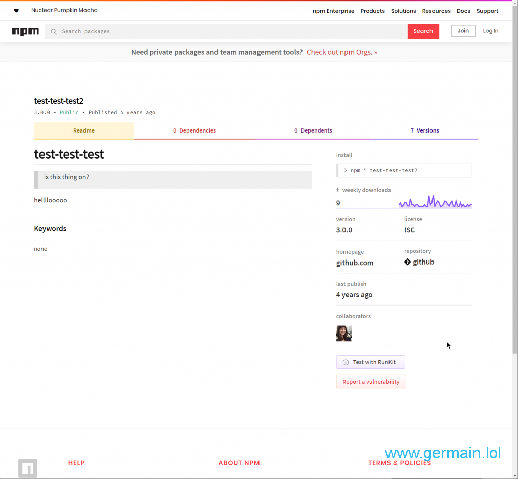 On remarque (grâce au pseudo et à la photo et un peu de curiosité malsaine) qu’il y a 4 ans, en novembre 2015, la jeune et jolie Ashley Williams venait de se faire embaucher chez Npm en tant que « Content manager ». C’est sur son LinkedIn.